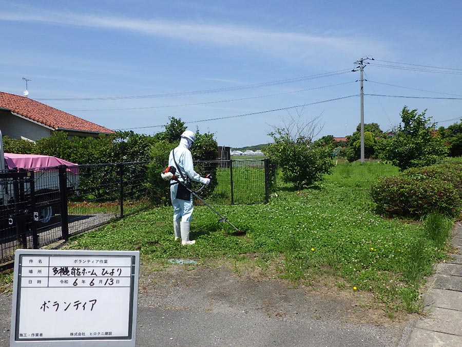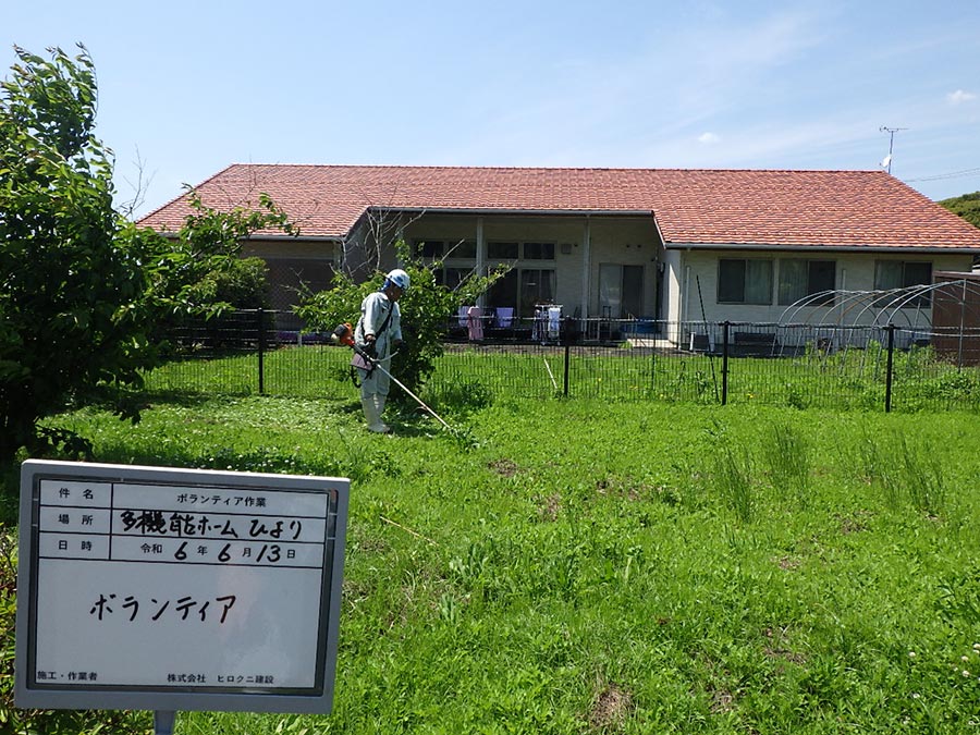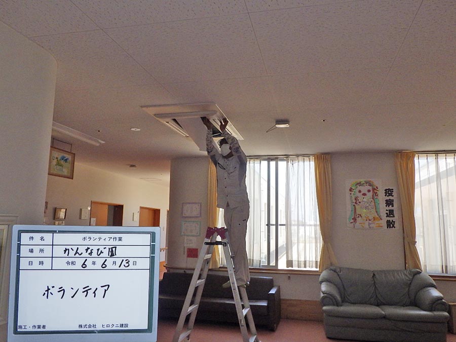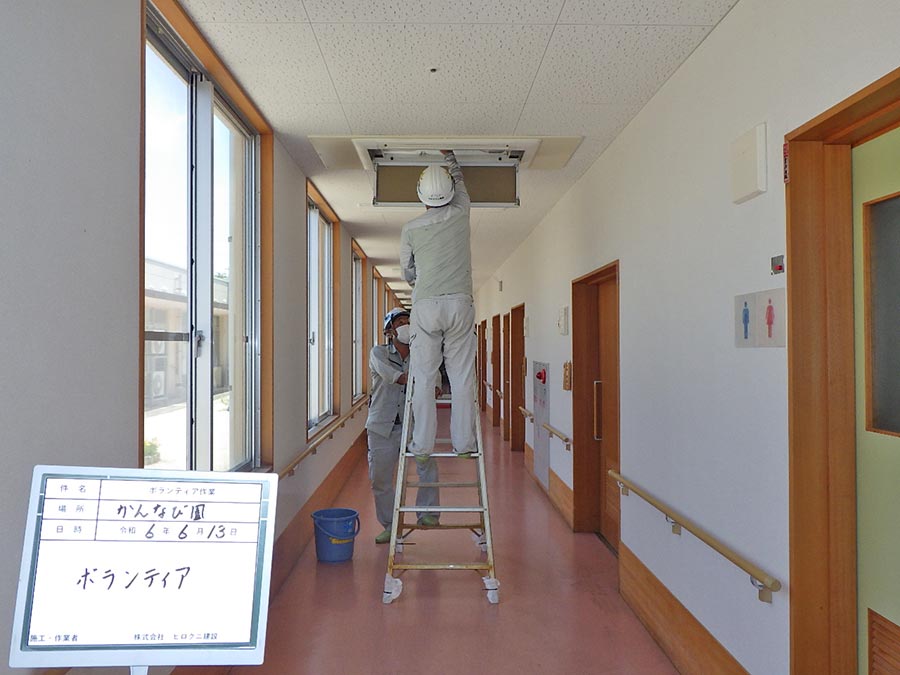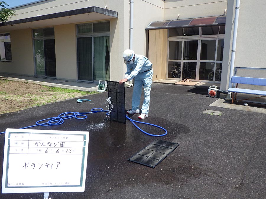 6月13日小規模多機能ホームひより 草刈り特別養護老人ホームなのはな園・養護(盲)老人ホームかんなび園 エアコンフィルター掃除