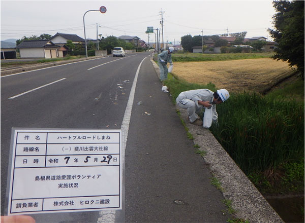 毎年、年に6回就業前に道路のゴミ拾いをしています。今年度初回のゴミ拾いです。